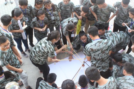 2017年8月3日,在这个艳阳高照的日子里,西安大唐补习学校18届新生,在教练的一声哨响中,拉开了新生素质拓展训练的帷幕。 本次的拓展训练分别在三天半的时间里,分别要完成诸多不同的任务。分队建团、毛笔写字、托举传球、能量环、人桥、盲行、过草地……一个接着一个的游戏,开拓着学生的潜力,拉近着同学们的关系,唤醒着学生的感恩之心。
